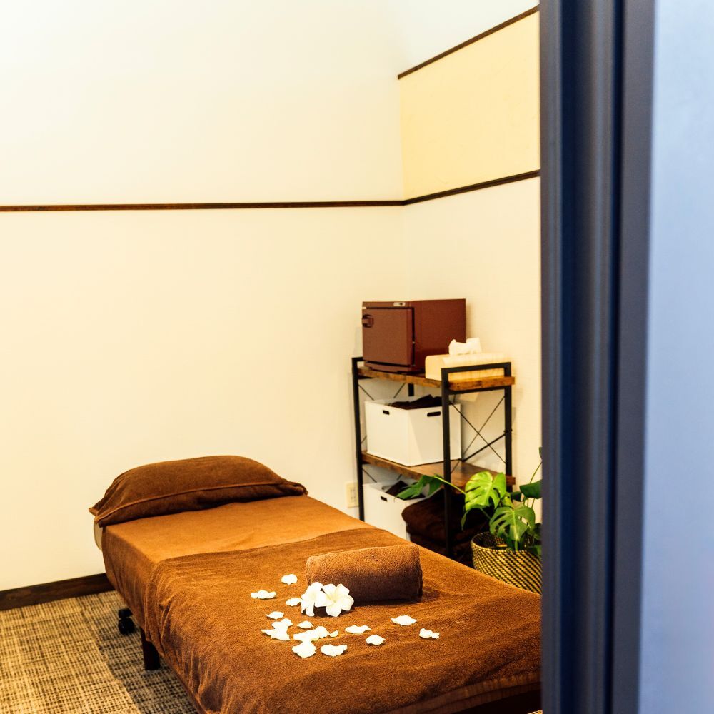 内装には一部漆喰を採用し、施術中もリラックスできる空間に仕上げました。